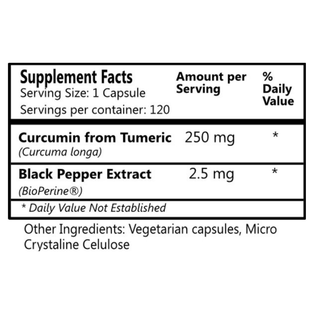 Curcumin Capsules from Daily Manufacturing contains a highly active natural curcumin from the Indian spice turmeric. Turmeric is a staple of Indian cuisine and has long been considered to provide numerous health benefits. In addition BioPerine®, a black pepper extract, is added to help with absorption. Each capsule provides 250 mg of Curcumin from turmeric and 2.5 mg of Black Pepper extract (BioPerine®). Each bottle contains 60 Vegetarian capsules and is made by Daily Manufacturing.