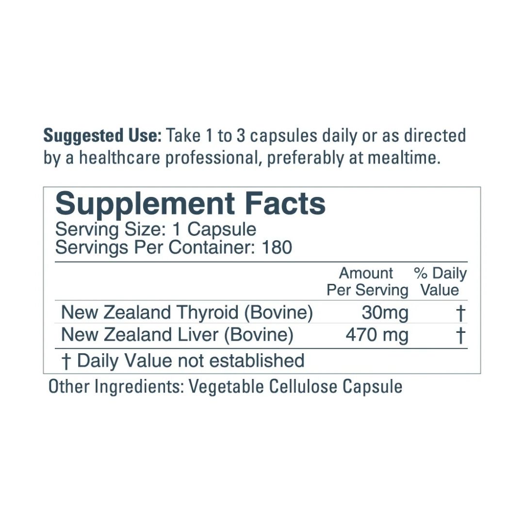 Dr. Ron’s Thyroid supplement offers a natural, nutrient-rich formula to support thyroid function. It contains thyroid tissue from healthy animals, including bovine thyroid and liver, sourced from New Zealand’s grass-fed, hormone-free, and antibiotic-free animals. This supplement provides essential nutrients to help promote optimal thyroid health. Native American traditions, such as consuming thyroid tissue from male moose in the fall to enhance fertility, highlight the long-standing benefits of organ meats.